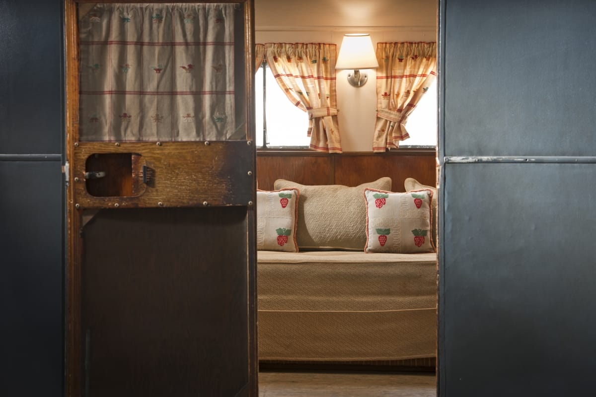Henry Ford gave this trailer to his friend Charles Lindbergh in 1942. Charles and his wife Anne used it as a home on the road and as a spare room and a study at home. Anne wrote The Steep Ascent here, and Charles wrote portions of his Pulitzer Prize-winning book The Spirit of St. Louis.