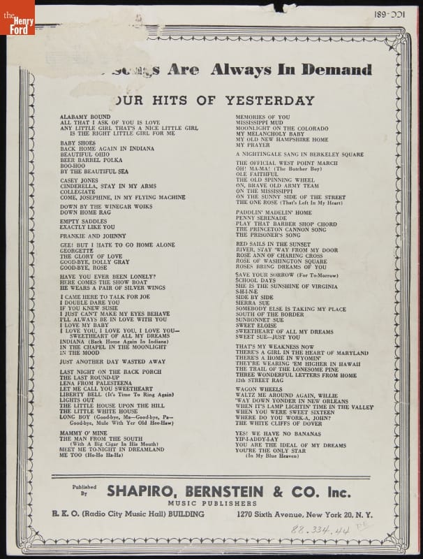 Music and lyrics by Jimmy Kennedy and Arthur Finn, sung by Art Mooney and published by Shapiro, Bernstein & Company, New York, New York.