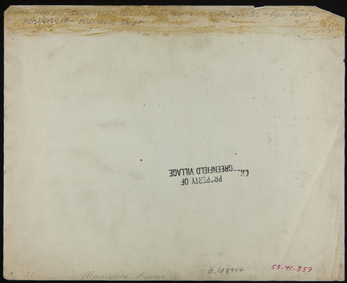 Manicurist Stand within Main Factory Plant, H. J. Heinz Company, Pittsburgh, Pennsylvania, circa 1910
