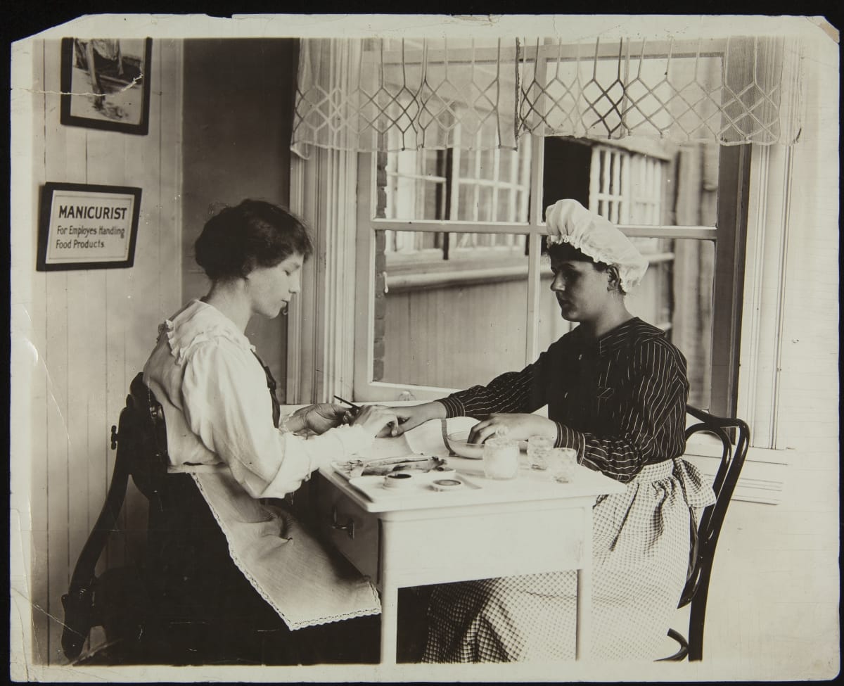 H.J. Heinz was one of the first to emphasize the importance of cleanliness and sanitation in manufactured food production. Those who directly handled food were given a mandatory manicure once per week. This not only was a sanitation necessity for Heinz but was also a welcome luxury for the workers.
