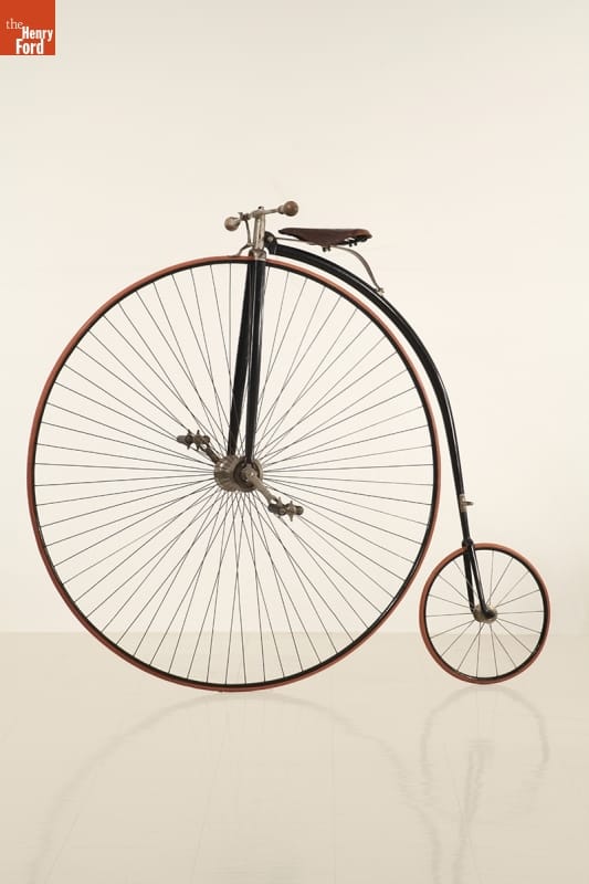 Pope Manufacturing Company manufactured this Expert Columbia bicycle in 1884. By the mid-1880s, the high-wheel ordinary incorporated many innovations such as steel-tube frame construction, ball bearings, and wire wheels with rubber tires. These improvements made the ordinary a popular recreational and sporting machine. But the difficulty in mounting and safety concerns tended to limit its use mainly to athletic young men.