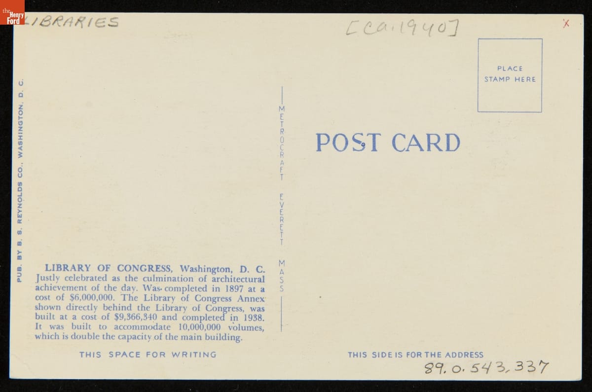 Postcard, "Library of Congress and Annex, Washington, D.C.," circa 1940