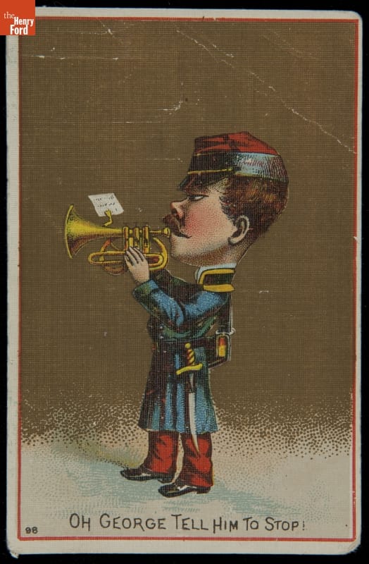 In the last third of the nineteenth century, an unprecedented variety of consumer goods and services flooded the American market. Advertisers, armed with new methods of color printing, bombarded potential customers with trade cards. Americans enjoyed and often saved the vibrant little advertisements found in product packages or distributed by local merchants. Many survive as historical records of commercialism in the United States.