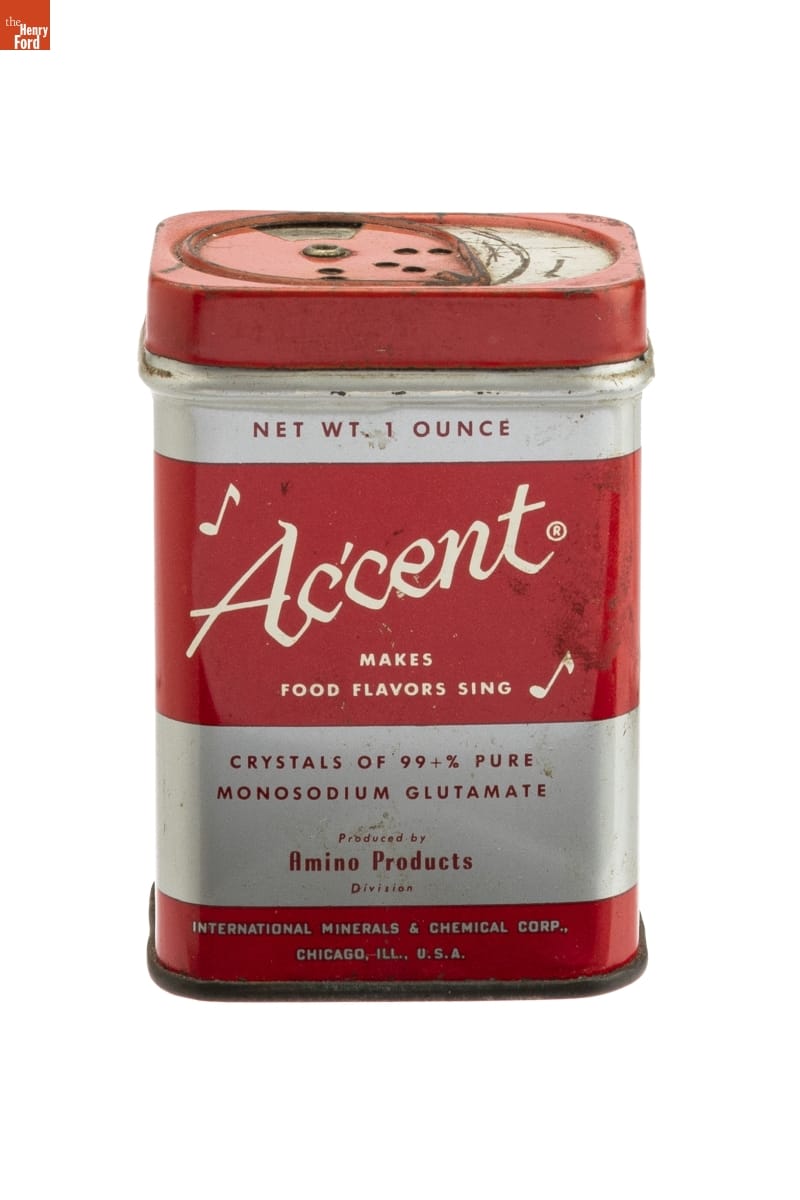 "Ac'cent: Crystals of 99+% Pure Monosodium Glutamate" Product Package, 1947-1955