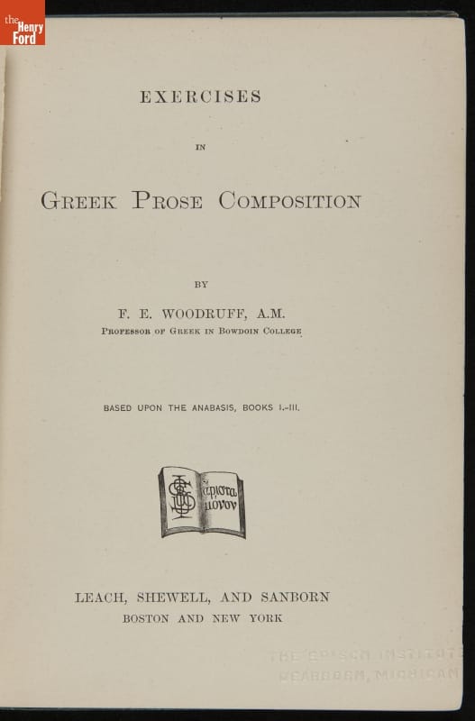 Book Used by Katharine Wright, "Exercises in Greek Prose Composition," 1891