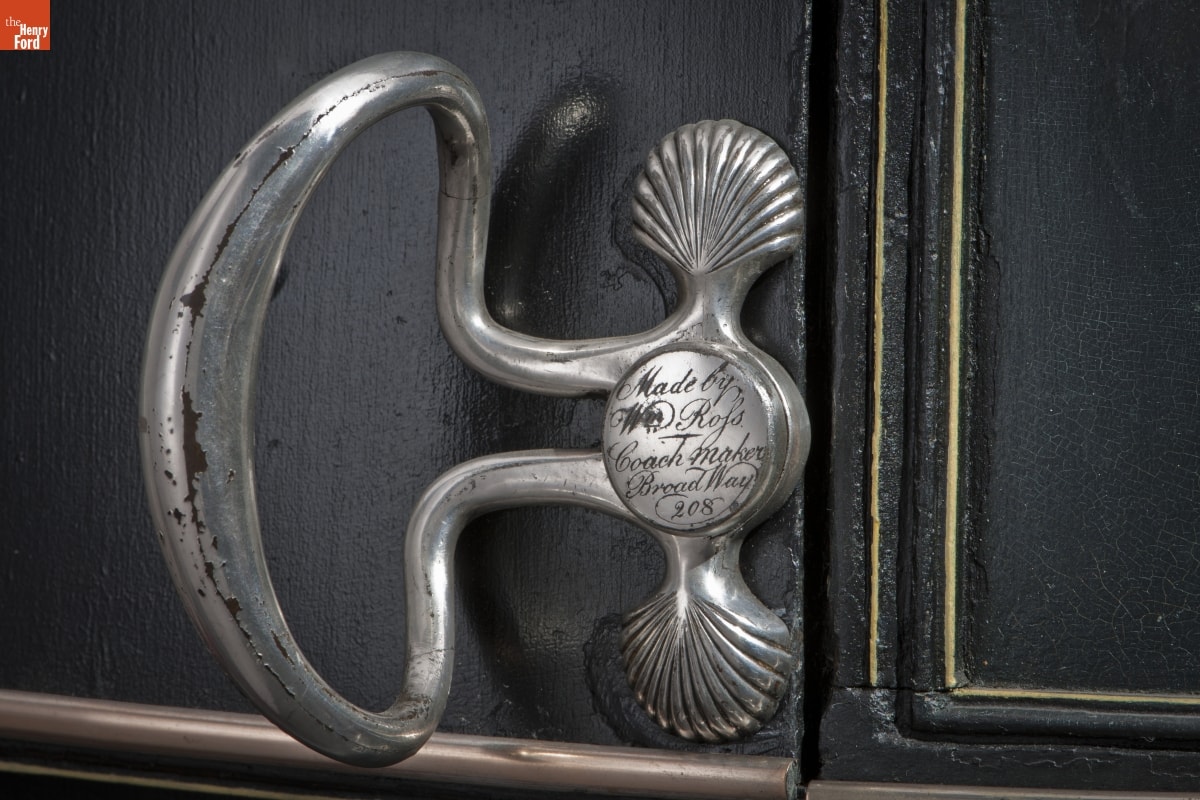 Location not noted: MADE BY / WILLM ROSS / COACH MAKER / 208 BROADWAY / N.YORK Location not noted: MADE BY WM ROSS / COACHMAKER / BROADWAY / 208 Painted on the lower door panels, and repeated on the front, under the driver's feet and rear body, below the coat-of-arms: NE OBLIVIS CARIS Painted on panels to the back the the doors on both sides: AC Imprinted on the lower portion of the upright springs at the front and back of the carriage: * I. HORTON *