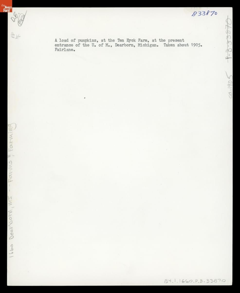 Wagon Carrying Pumpkins at the Ten Eyck Farm, Dearborn, Michigan, circa 1905