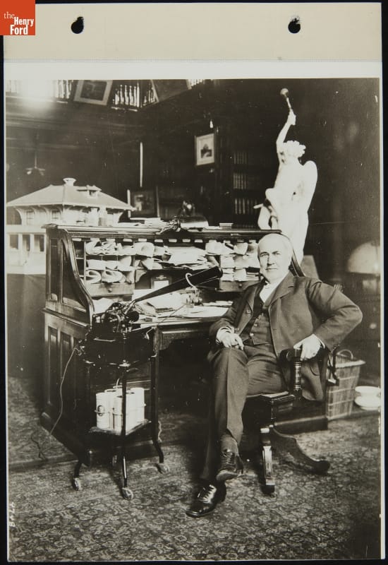 Thomas Edison with an "Ediphone" Dictation Machine at His Desk in the West Orange Laboratory, 1911