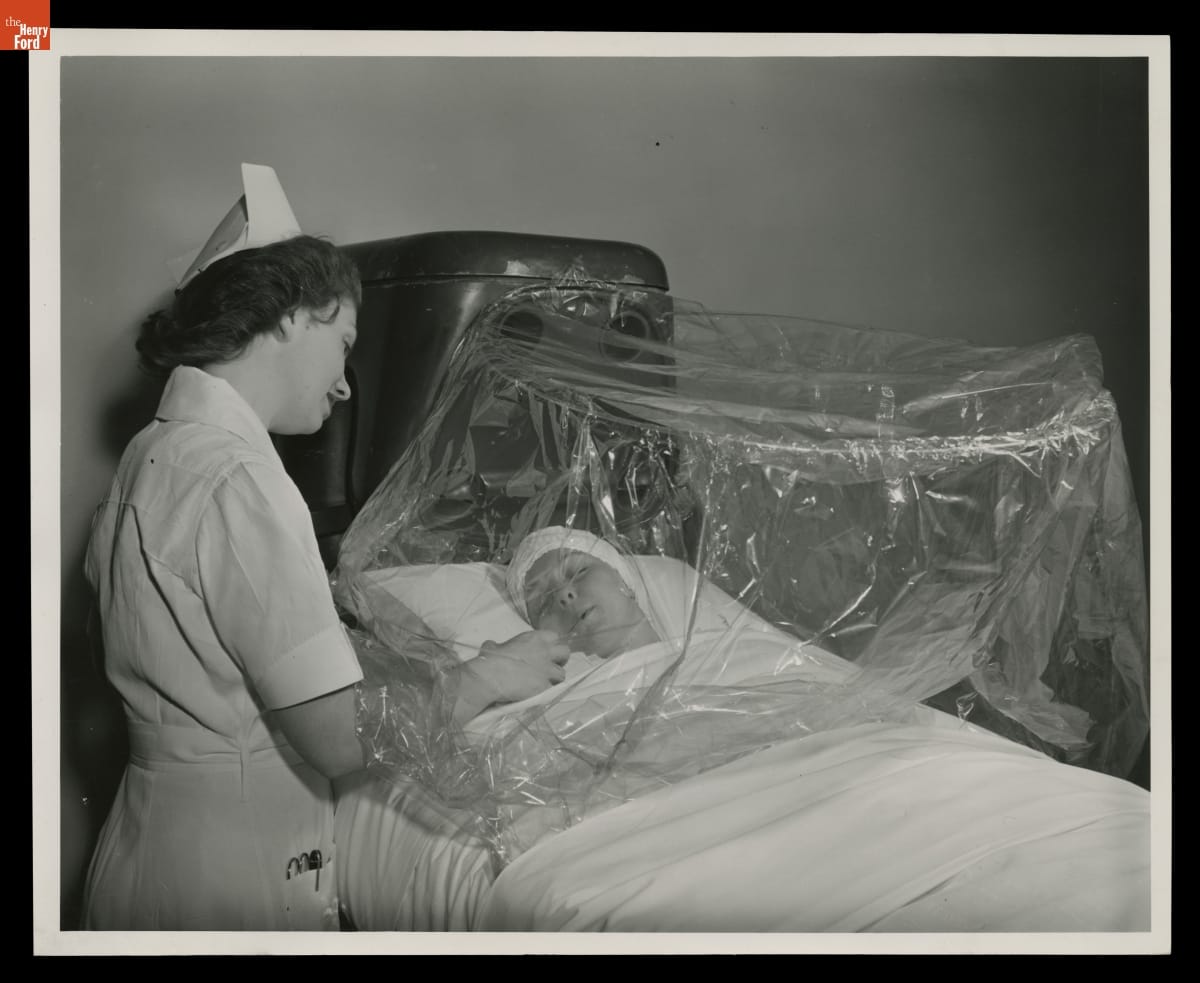Nurse Attending Patient in Oxygen Tent at Henry Ford Hospital, Detroit, Michigan, June 1946