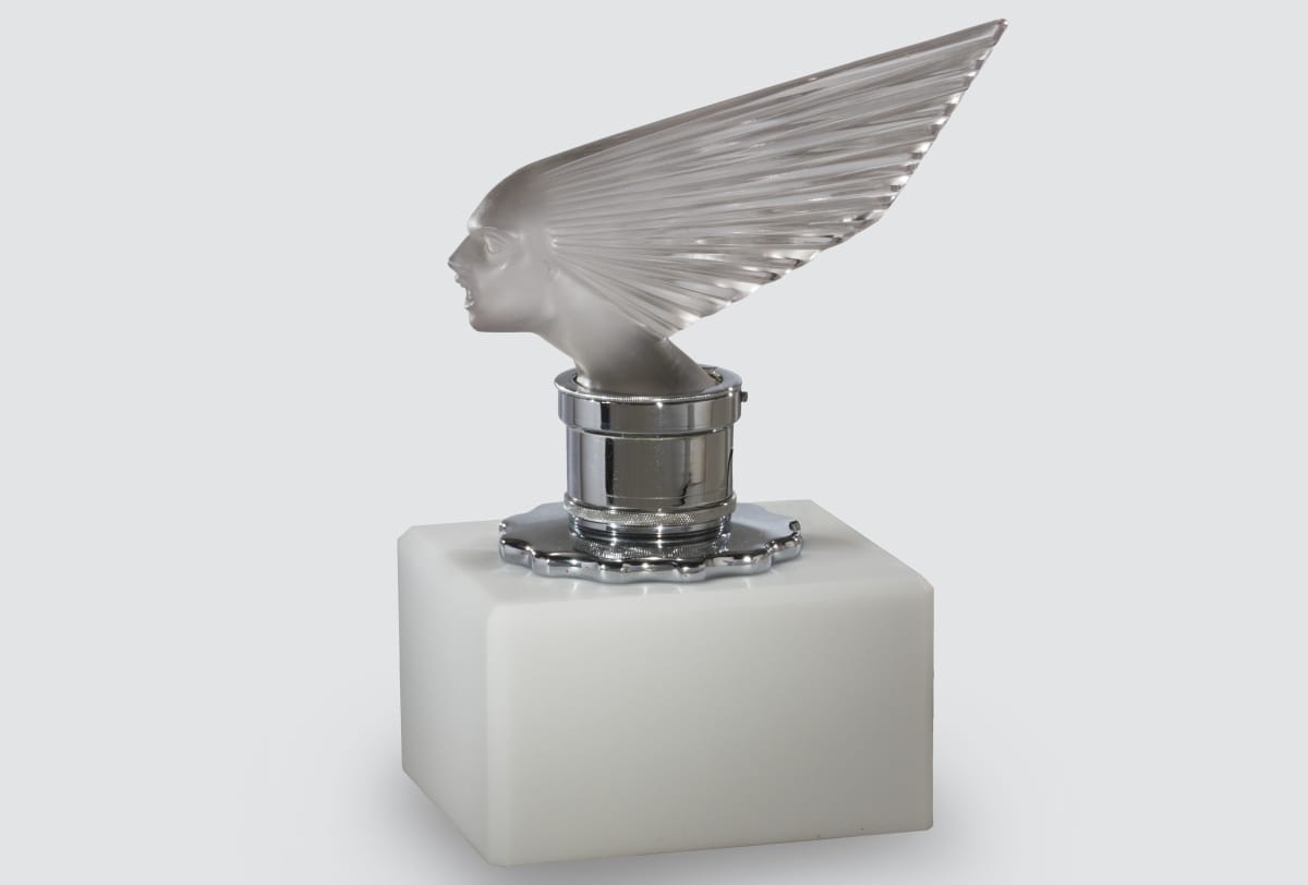 Rene Lalique created some of the most striking automobile mascots or hood ornaments. Lalique's elegant, molded-glass models enhanced the front of any luxury vehicle. The mascots could also be lit from below making them all the more impressive. These decorative mascots became a symbol of the car owner's wealth, status, and good taste.