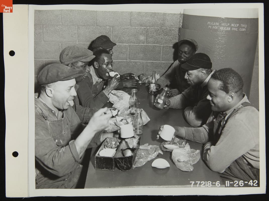 Ford Motor Company Employees Eat Thanksgiving Dinner on the Job at the Highland Park Plant, November 1942