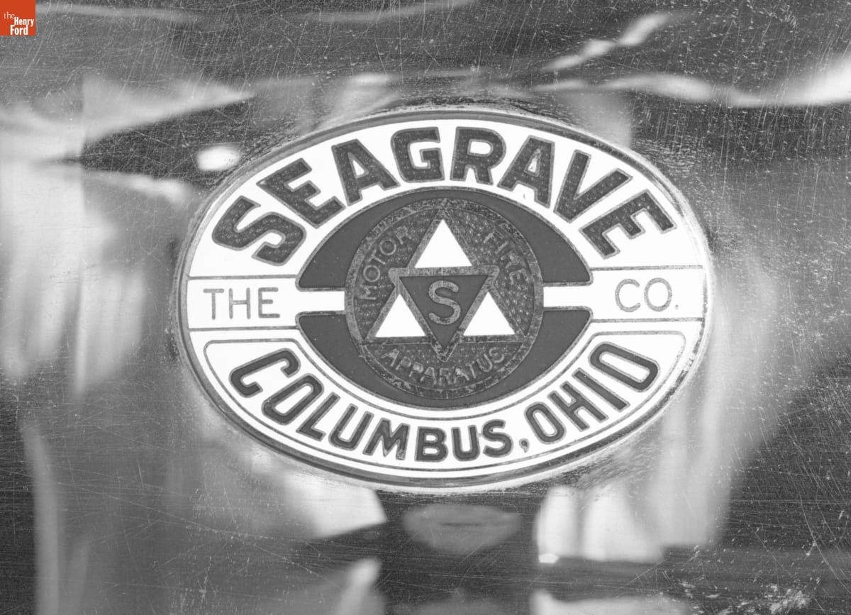 Grosse Pointe Shores, Michigan, purchased this fire truck in 1924, gave it a major overhaul in 1938 (adding new fenders, wheels, and lights), and fought fires with it for another 25 years. A 130-horsepower engine allowed the Seagrave to pump 750 gallons of water per minute. Gold-leaf decorations illustrate the pride firefighters took in their truck.