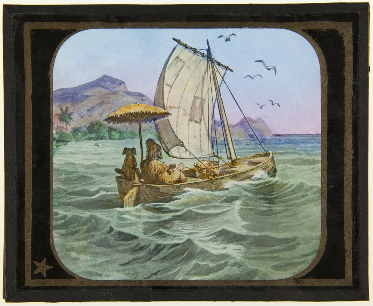 Lantern Slide, "Robinson Crusoe, He Sails Around the Island," 1894