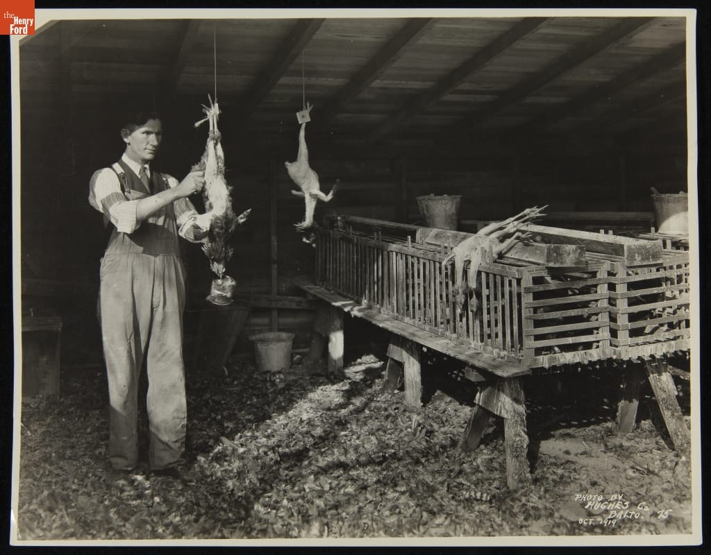 Blind Veteran Plucking a Chicken, Dearborn Independent, October 1919