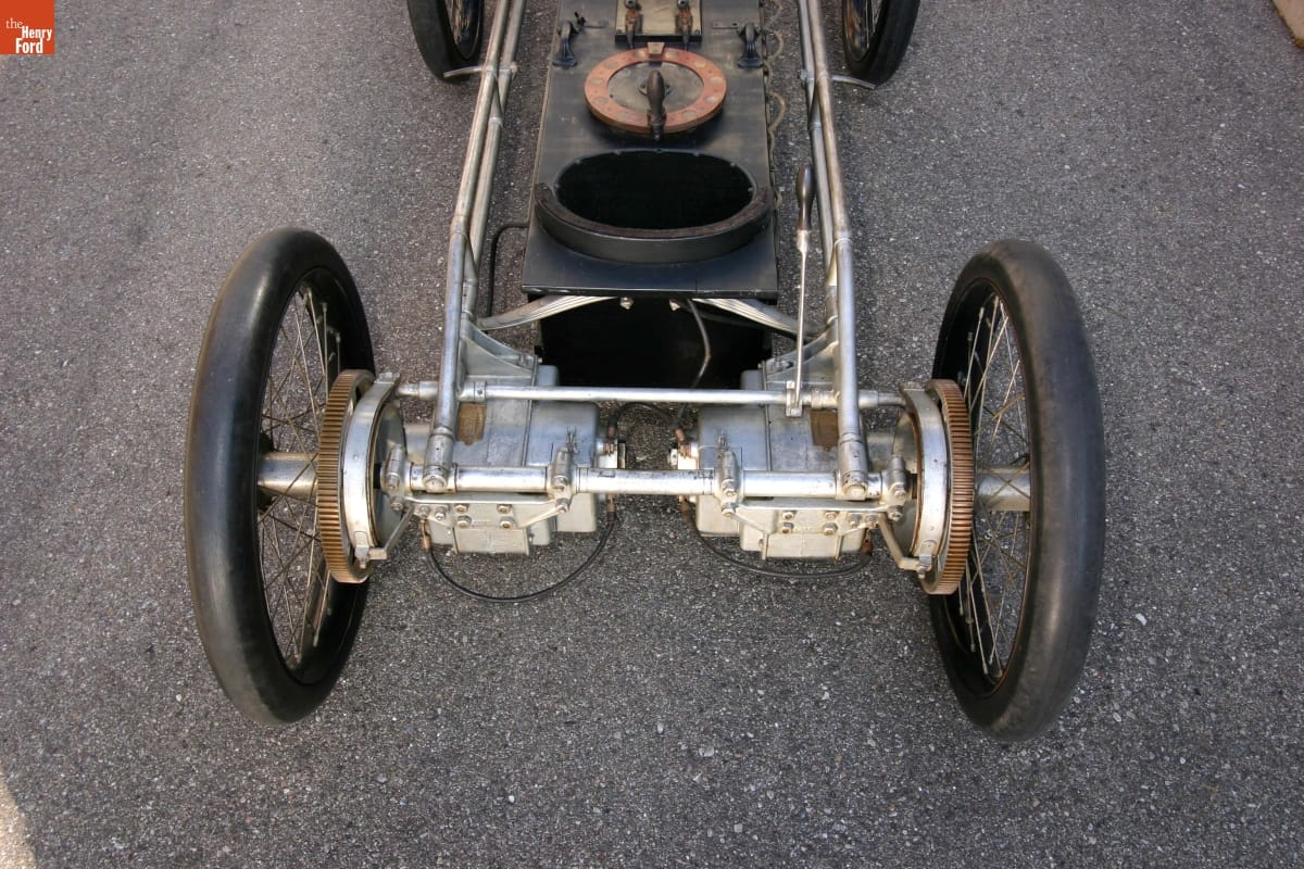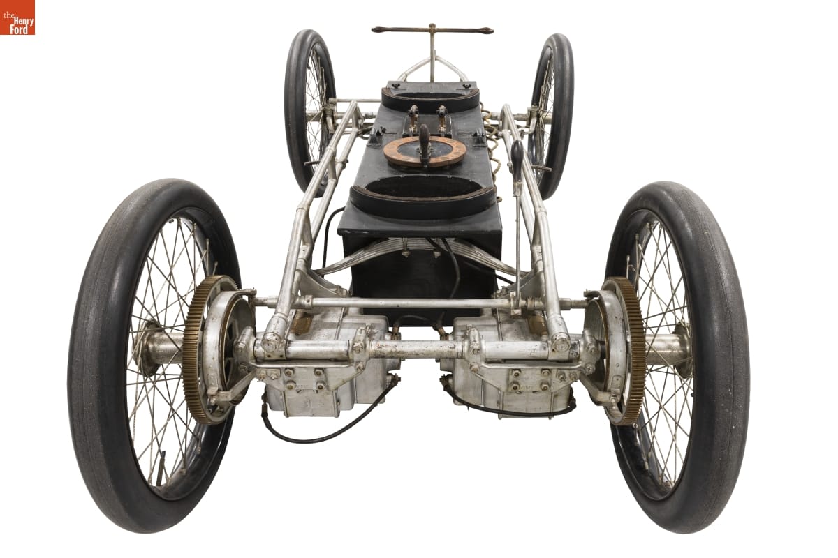 Andrew Riker, an early believer in the electric car, designed this battery-powered racer in 1901. He raced it at Coney Island, New York, that November and, at 57.1 miles per hour, set a world speed record for electric cars. It was a triumph for electricity, but Riker soon lost faith. He joined Locomobile the next year and started designing gasoline-powered automobiles.