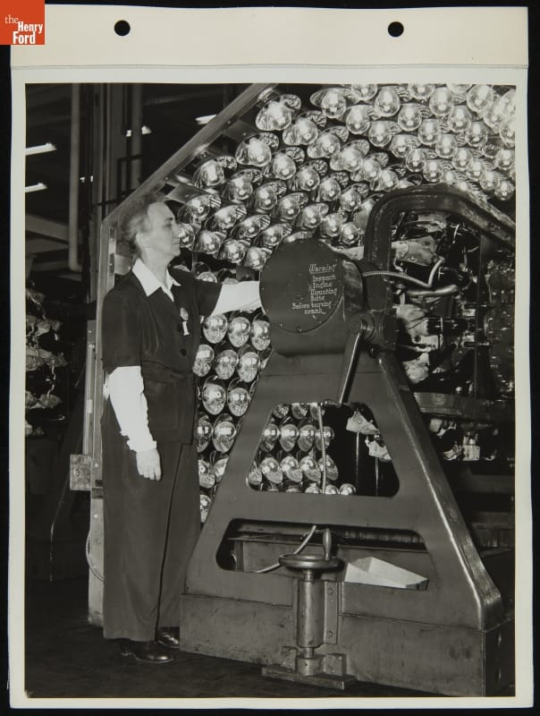 Mary E. Von Mach Inspects Pratt & Whitney Engines While Working at the Willow Run Bomber Plant, November 30, 1942