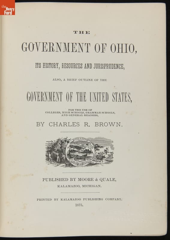 Book Used by Katharine Wright, "The Government of Ohio," 1875