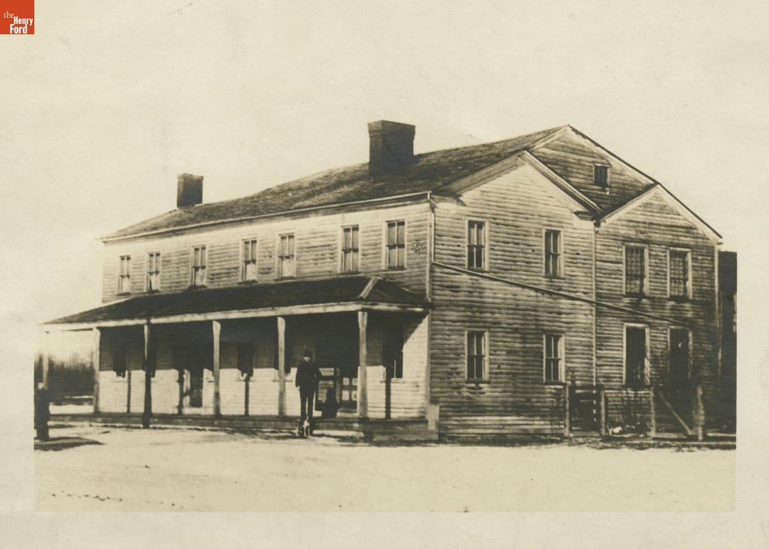 In the 1800s, long-distance travelers often rode public coaches "in stages," jostling along rough country roads with mail, freight, and other passengers. Every few hours, the coach would stop to change horses. This tavern and meeting place on Michigan's Grand River plank road catered to coach traffic, serving as a stagecoach stop and providing meals and lodging to weary travelers.