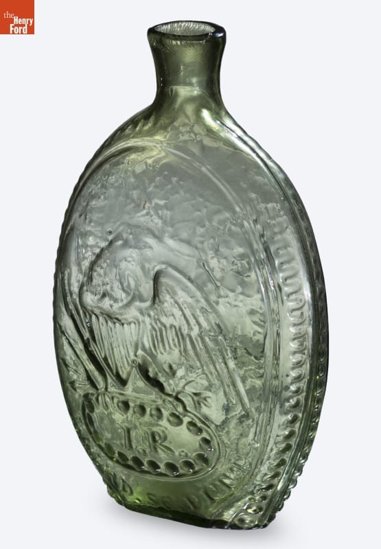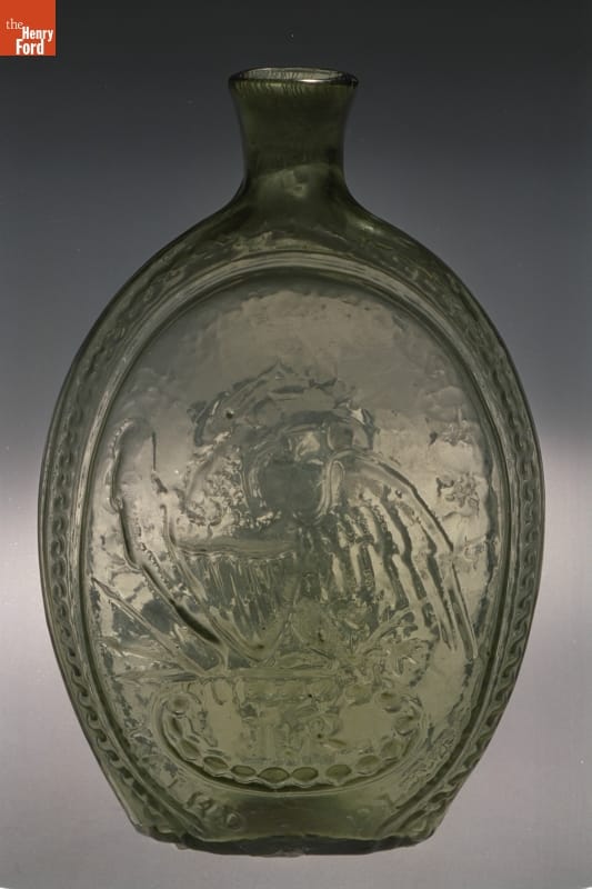 Glass factories in America began producing inexpensive, mold-formed flasks in the early 1800s. These figured flasks, often decorated with symbols of national pride or political or cultural affiliation, appealed to America's common man. Andrew Jackson -- soldier, farmer, politician and U.S. President -- was a hero to many early 19th-century Americans. Like other well-known Americans of that time, his likeness found its way onto flasks.