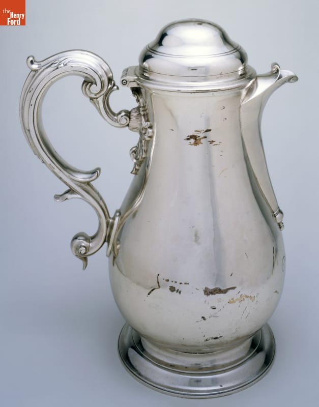 Master silversmith Myer Myers created this ewer, or covered jug, for Samuel Johnson, the first president of King's College (now Columbia University) and his wife Charity in the mid-to-late 1750s. A well-respected silversmith and a leader within colonial New York City's small Jewish community, Myer Myers crafted silver objects for many of New York's elite families as well as his synagogue, Congregation Sherith Israel.
