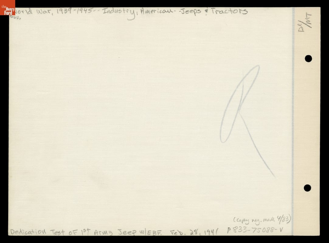 Edsel Ford and General Charles H. Bonesteel Testing the Ford GP Military Vehicle, February 1941