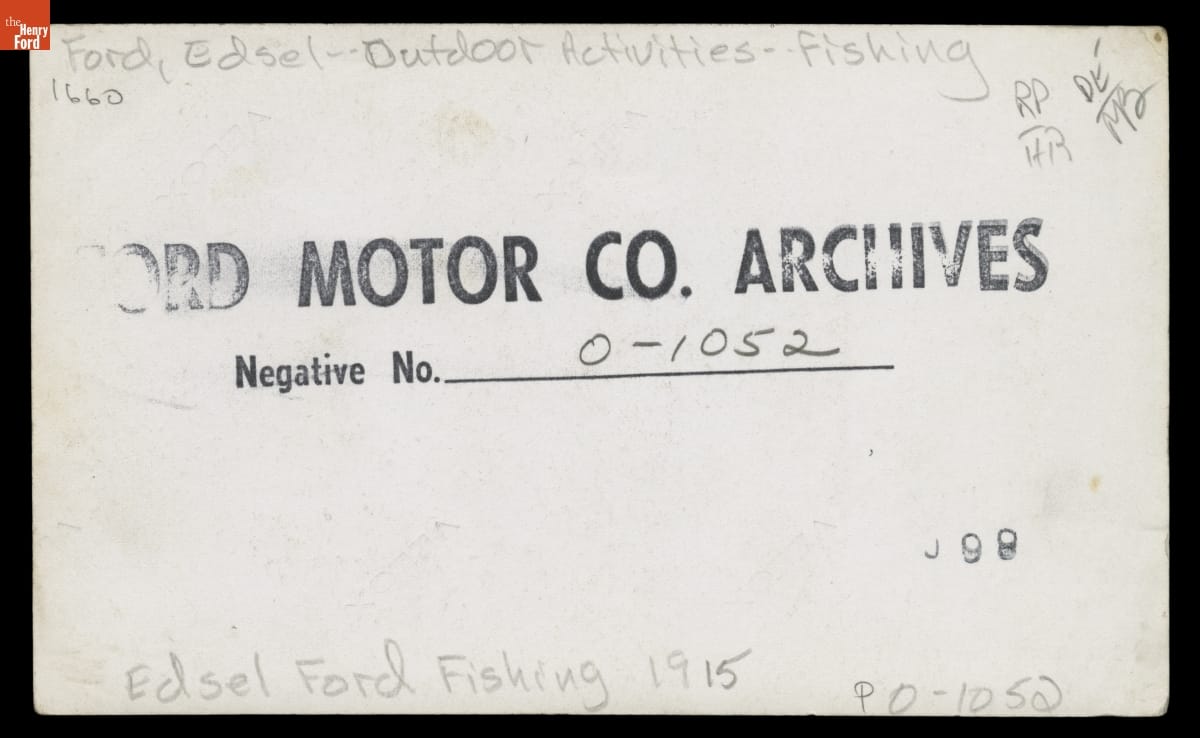 Edsel Ford was photographed while fly fishing about 1915. One of his personal highlights that year was the cross-country road trip he took with six of his friends. Ford and his companions trekked 2,400 miles from Detroit to San Francisco, traveling in a Ford Model T, a Cadillac and a Stutz.