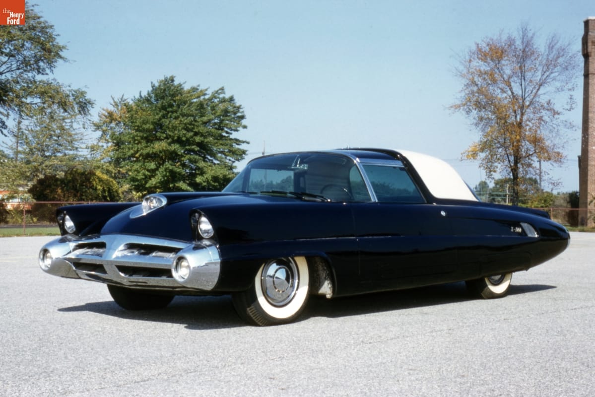 Ford Motor Company celebrated its 50th anniversary with the X-100, a fully functional concept car billed as a "laboratory on wheels." The X-100 featured more than 50 innovative ideas. Some of them, like the heated seats and the telephone, eventually became commonplace. Others, like the variable-volume horn and the in-car electric shaver, never quite caught on with the public.