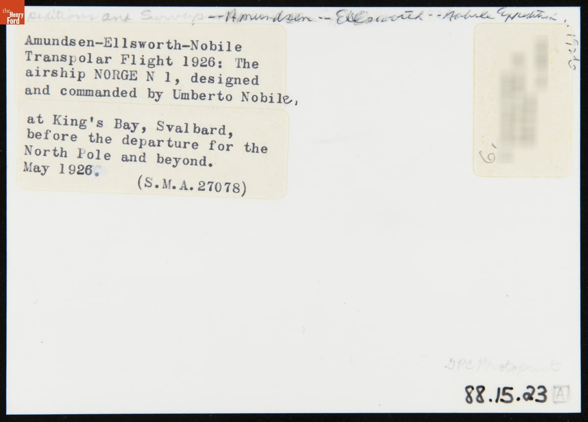 Airship "Norge," Designed and Piloted by Umberto Nobile, before Departure to the North Pole, May 1926