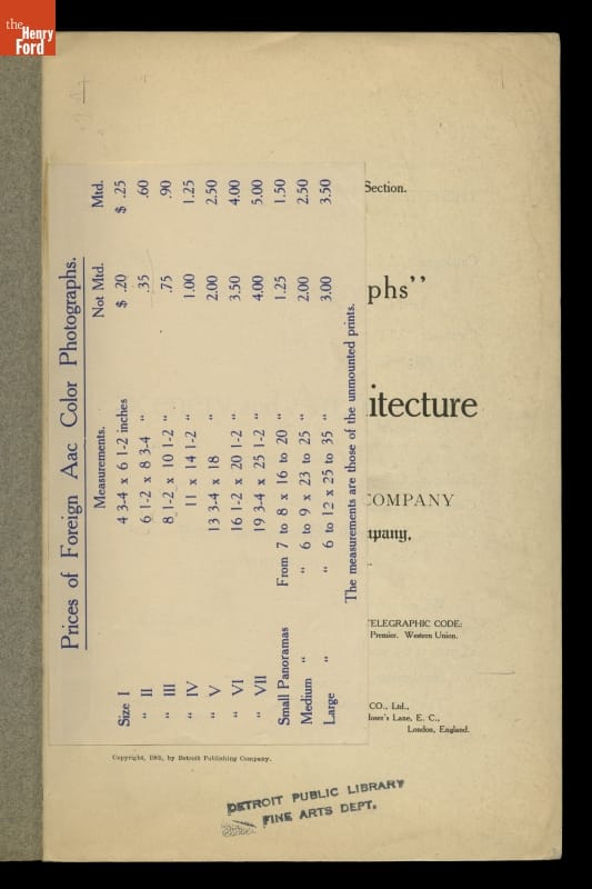Written on front cover: Detroit Publishing Co. #4 Publication discontinued 1936 Stamped on front cover: DETROIT PUBLIC LIBRARY FINE ARTS DEPT. FINE ARTS CLIPPINGS