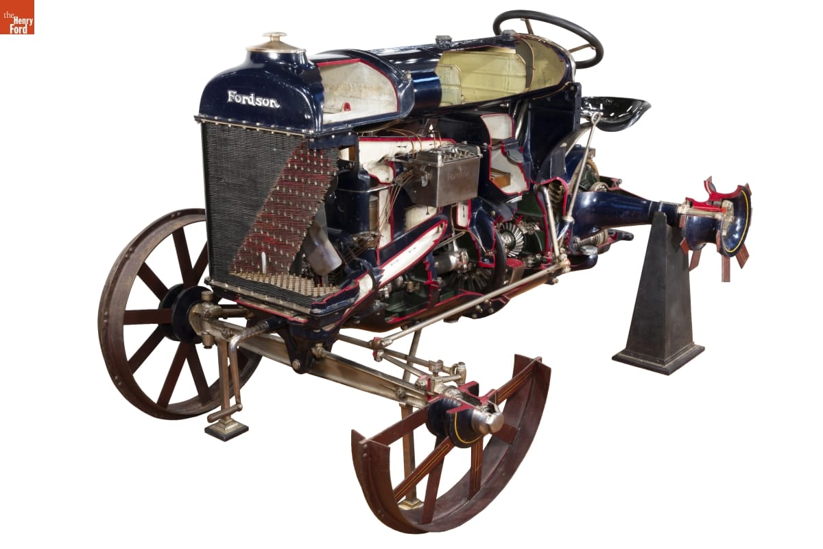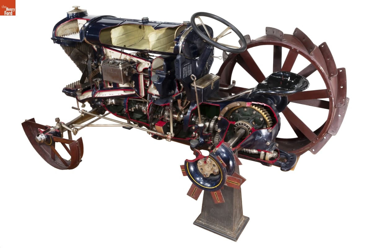 The Ford Motor Company used cutaways to educate customers about internal combustion, power generation, and transmission. Antonio Stabile, a Ford distributor in Rosario, Argentina, instructed his service department manager, Bernardo Paglini, to make this cutaway of a 1926 Fordson tractor to display in his showroom and at exhibitions. Model changes made the cutaway obsolete and Mr. Stabile shipped it to Ford in late 1931.