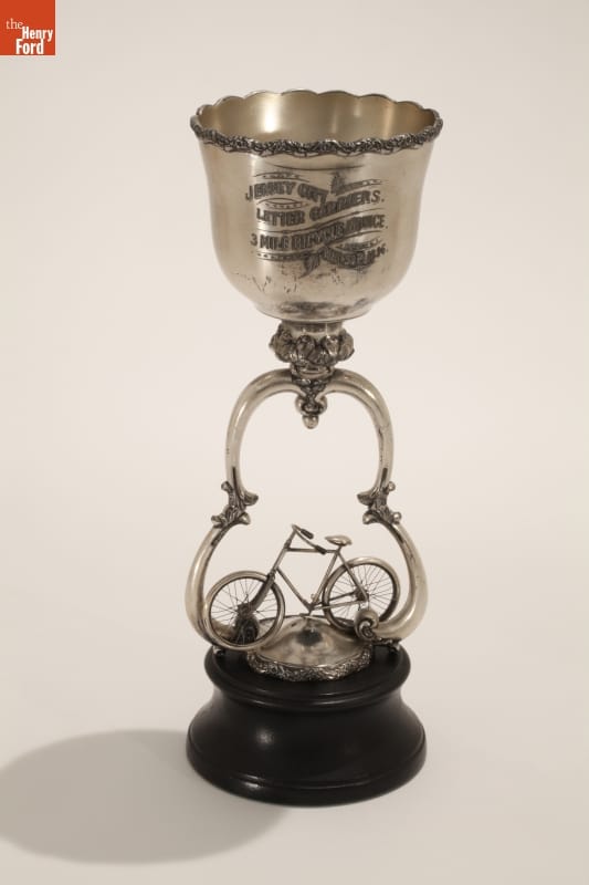 George M. Holley founded his first automotive company, with his brother Earl, in 1896 -- when he was still a teenager. After initially building three- and four-wheeled vehicles, the brothers specialized in carburetors, and the Holley Carburetor Company became a major supplier to American automakers. George Holley won this trophy in an 1896 bicycle race in New Jersey.