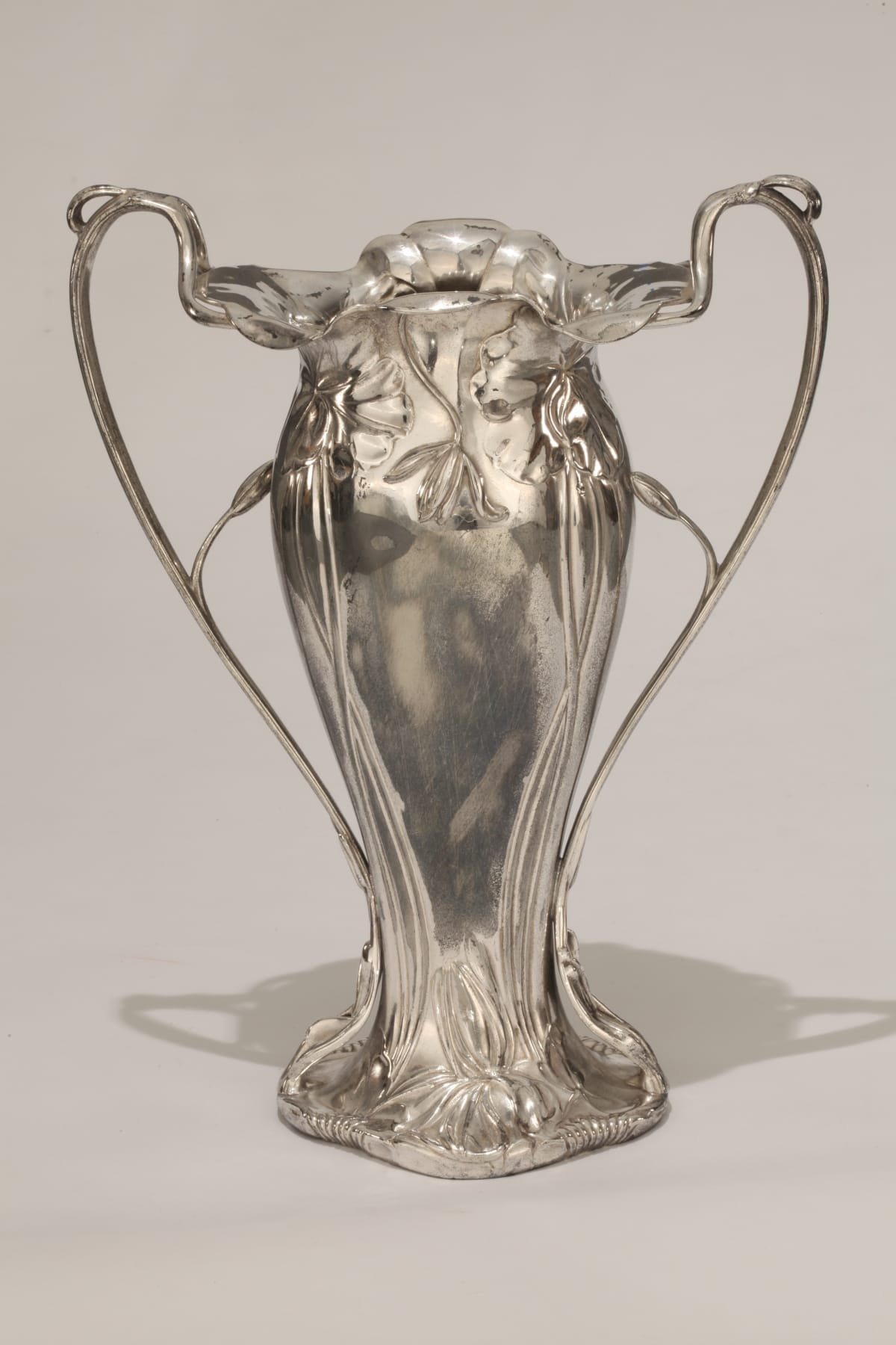 Engraved on obverse: CHARLES FULLERGATE / TROPHY / LIGHT RUNABOUT CLASS / HILL CLIMB / RIVERSIDE, NOV 29-1906 / WON BY / MODEL N. / FORD Handwritten on sticker on front: F 125 Bottom: PAIRPOINT MFG. CO / NEW BEDFORD MASS / QUADRUPLE PLATE / PAT APL'D FOR / 3398