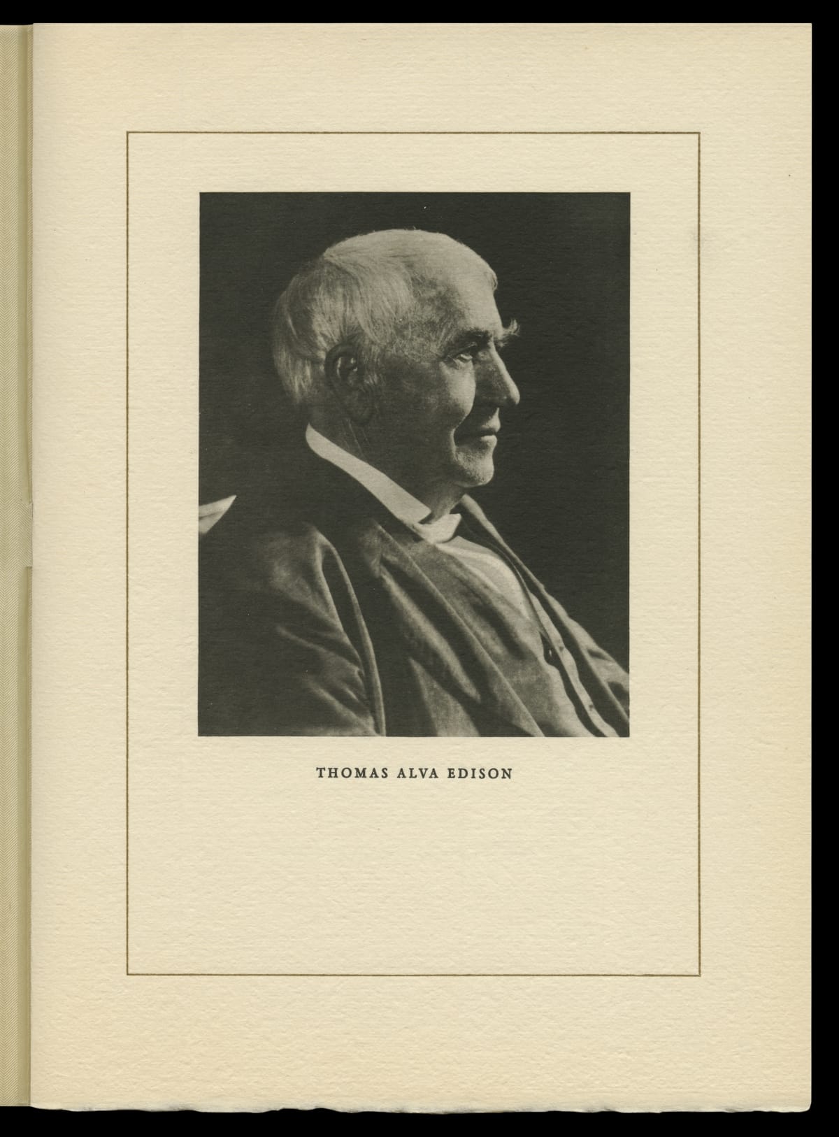 on front: UPON THE OCCASION / OF / THE FIFTIETH ANNIVERSARY OF HIS/ INVENTION / OF THE ELECTRIC LIGHT / AND OF THE / DEDICATION / OF THE EDISON INSTITUTE / OF TECHNOLOGY / INDEPENDENCE HALL / GREENFIELD, MICHIGAN / OCTOBER TWENTY-FIRST / NINETEEN HUNDRED TWENTY-NINE