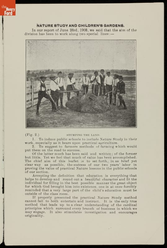 Among George Washington Carver's contributions were the bulletins he issued from the Agricultural Experiment Station at the Tuskegee Institute. This pamphlet, written for teachers, treats the popular topic of "nature study," the early 20th century's version of environmental education. It was a guide for educators wanting to involve school children in gardening to help prepare them for successful farming careers. Carver's nature study bulletins emphasized both aesthetic and scientific understandings of nature and were popular across the country.
