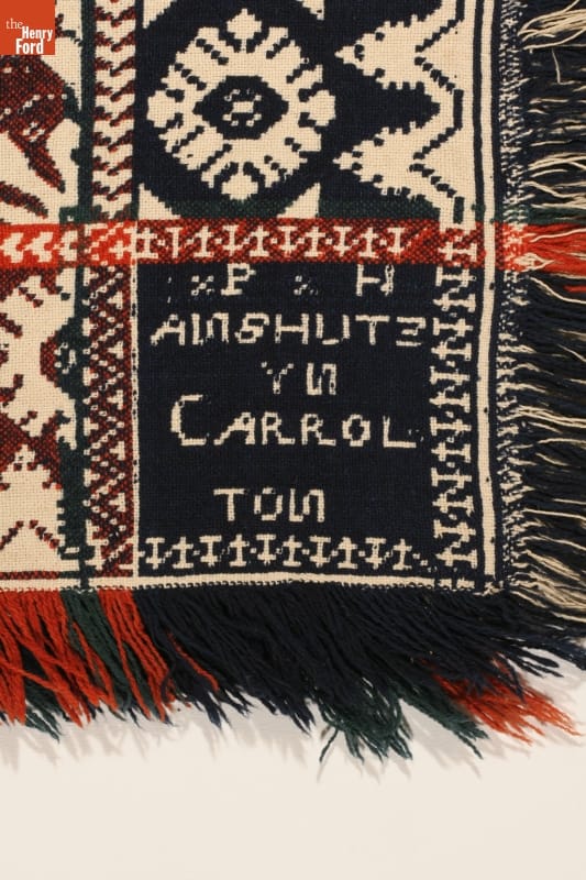 A coverlet is a decorative bedcovering--usually made of cotton and wool--woven on a loom. Philip Anshutz, an immigrant from Germany, wove this coverlet in Carrollton, Ohio, in the 1840s. Many coverlet weavers were immigrants, often bringing weaving techniques and designs with them from their native lands.
