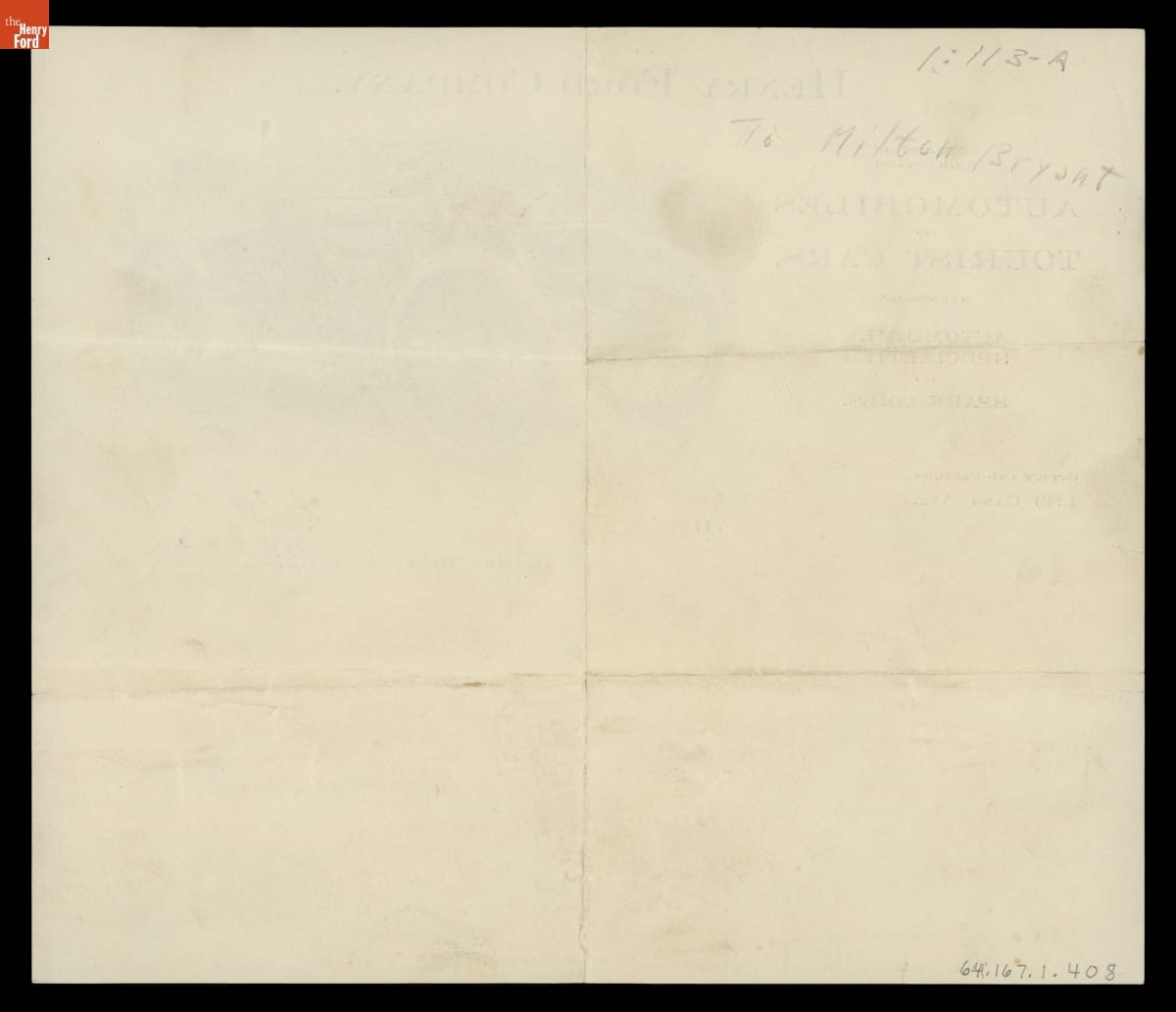 Letter from Henry Ford to Milton Bryant Concerning Auto Racing, 1902