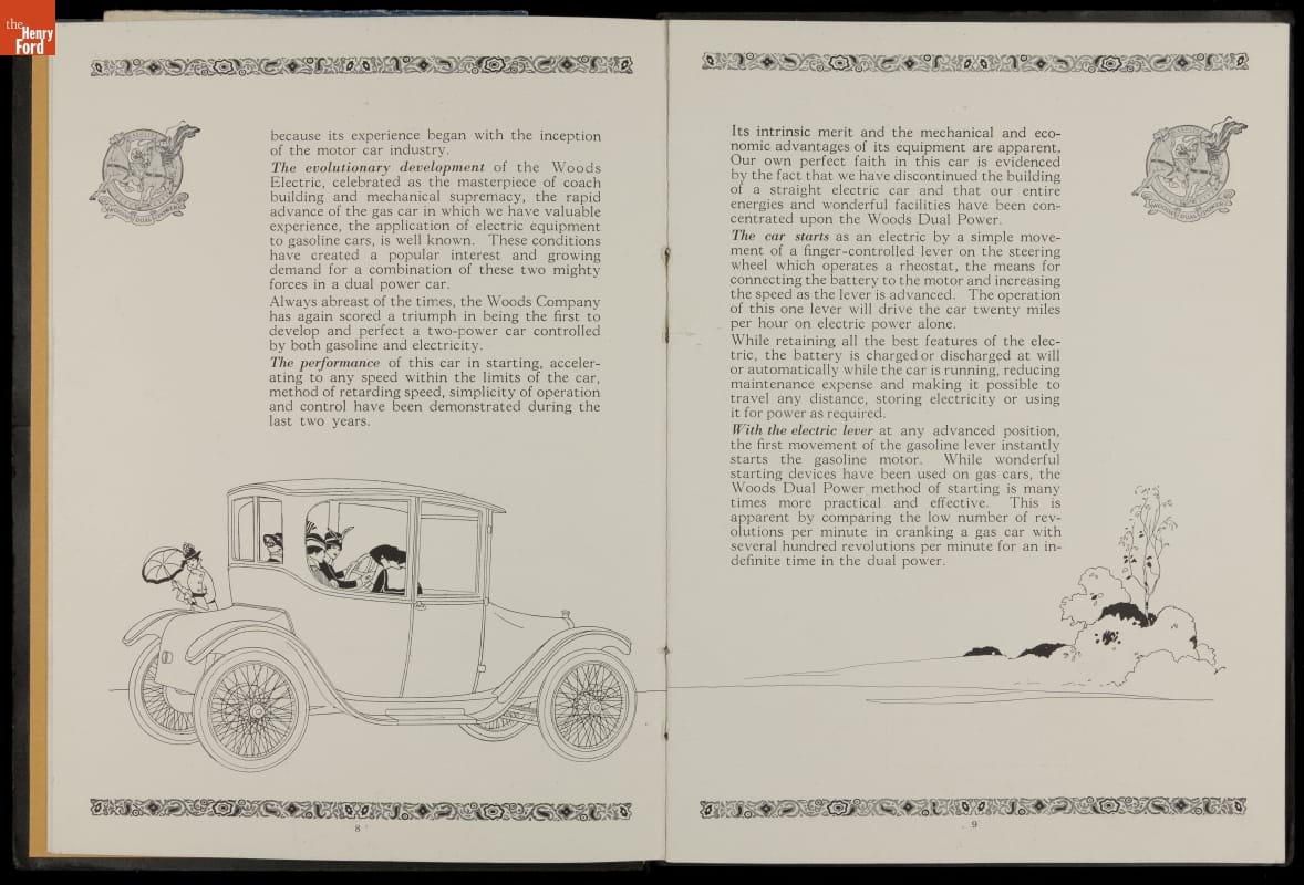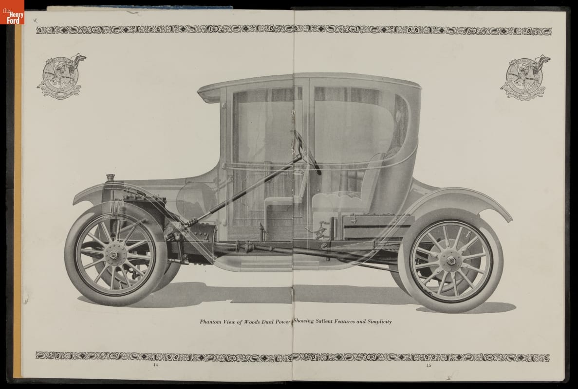 This 1916 catalog showcases the Woods Dual-Power automobile. Batteries and gasoline powered the vehicle. The Woods Motor Vehicle Company hoped to draw in buyers with the best of both power sources. It didn't work. The company failed a few years later.