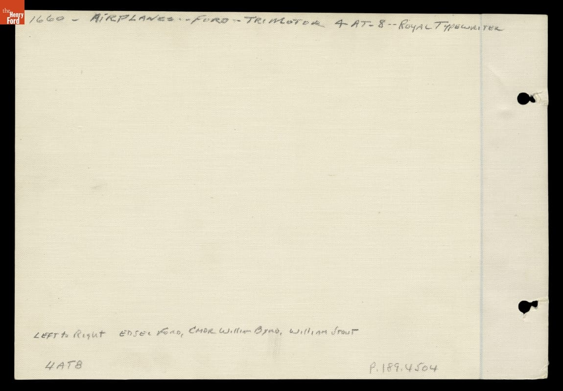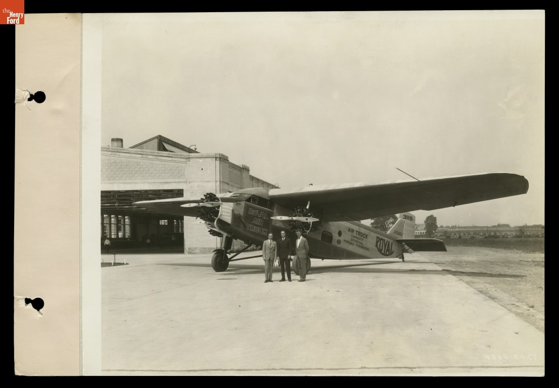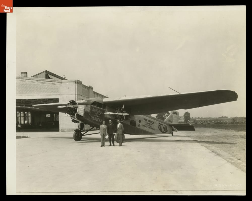 Edsel B. Ford, Richard E. Byrd and William B. Stout with Royal Typewriter's Ford Tri-Motor 4-AT-8, 1927
