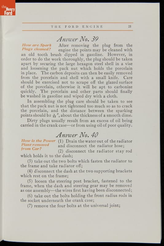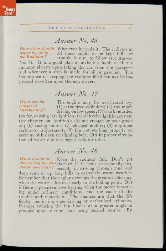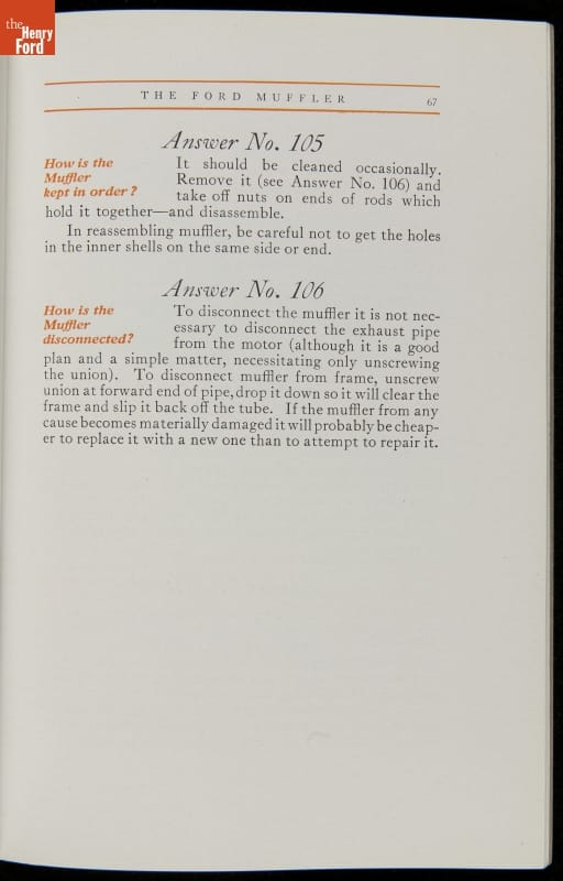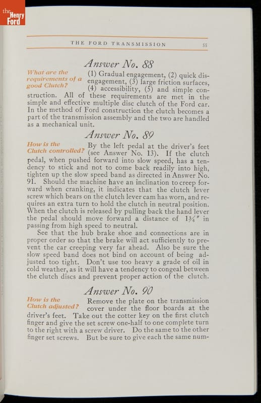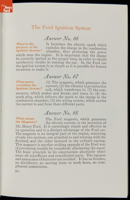 As cars became affordable and more people began using them, owners needed to know how to operate them properly. This 1914 manual helped the layperson -- without a mechanical or technical automotive background -- understand and drive the Ford Model T. Ford touted the T's simplicity, but its manual still provided over 140 answers to possible questions owners might have.