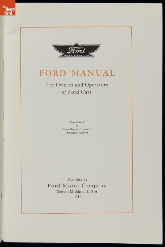 "Ford Manual for Owners and Operators of Ford Cars," 1914