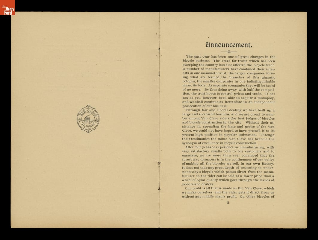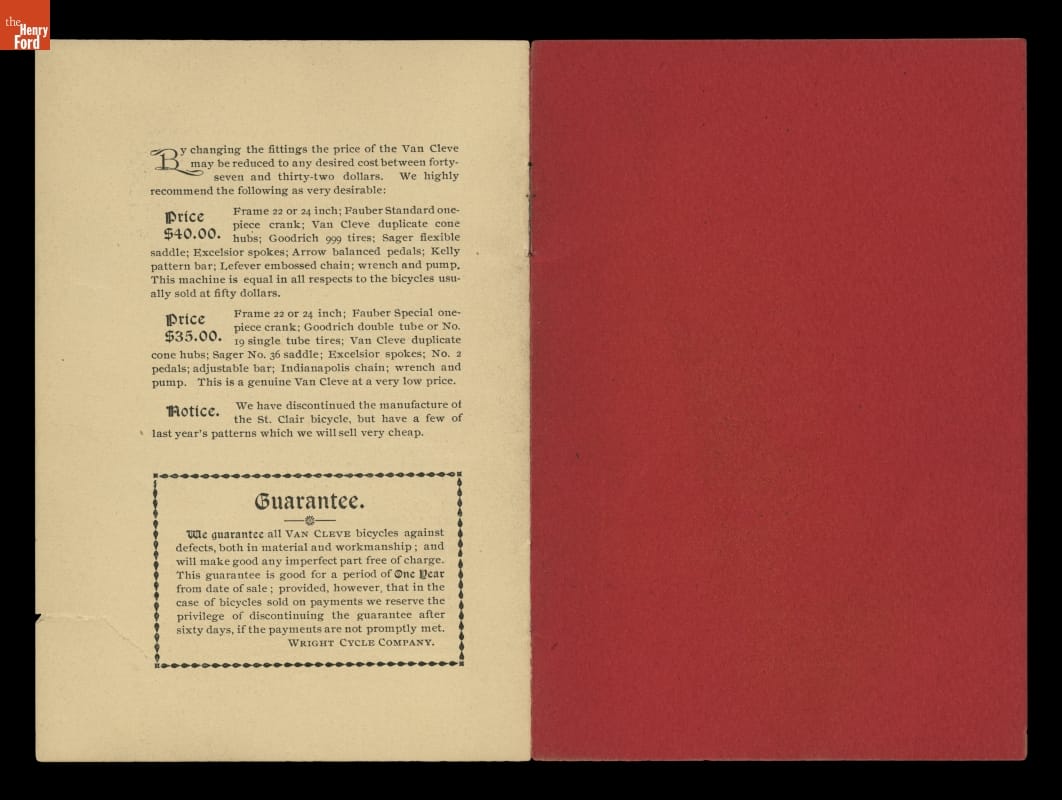 Catalog for Van Cleve Bicycles, Wright Cycle Company, 1900