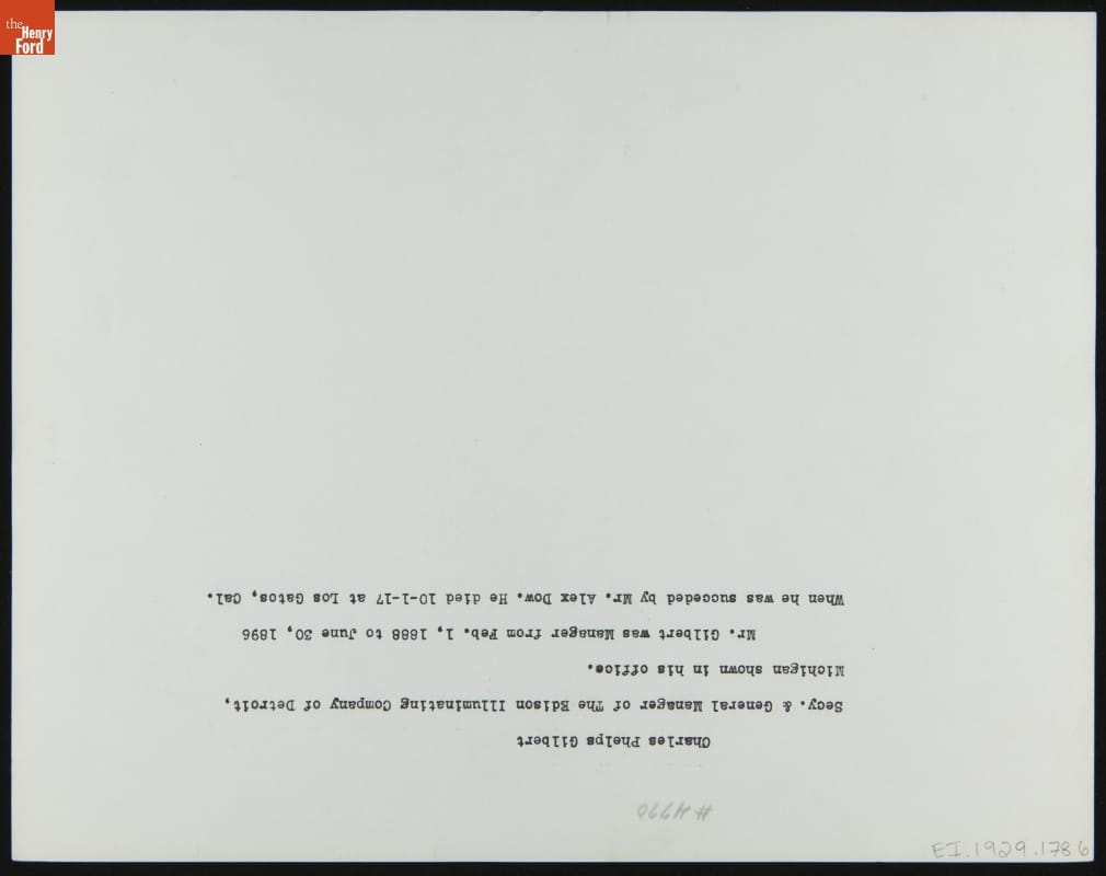 In 1891, Henry Ford left his small lumber business to work for the Edison Illuminating Company in Detroit. He was hired on by the general manger, Charles Phelps Gilbert (pictured here). Ford's work impressed his superiors, and by early 1894 he was promoted to chief engineer. While working at the Edison Illuminating Company, Ford also built his first horseless carriage, the Quadricycle.