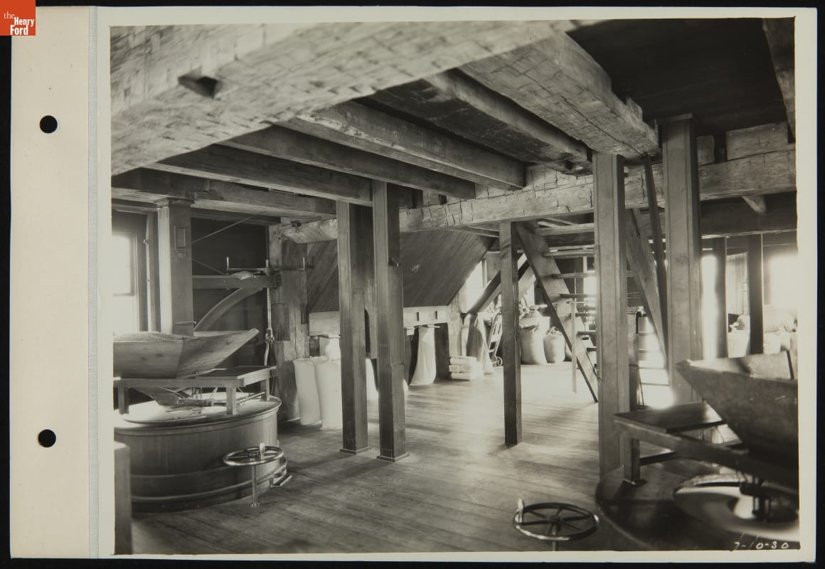 Interior View of Loranger Gristmill in Greenfield Village, 1930