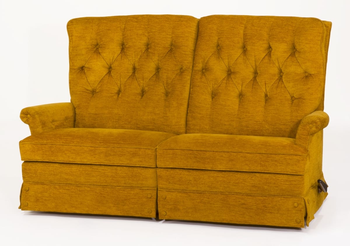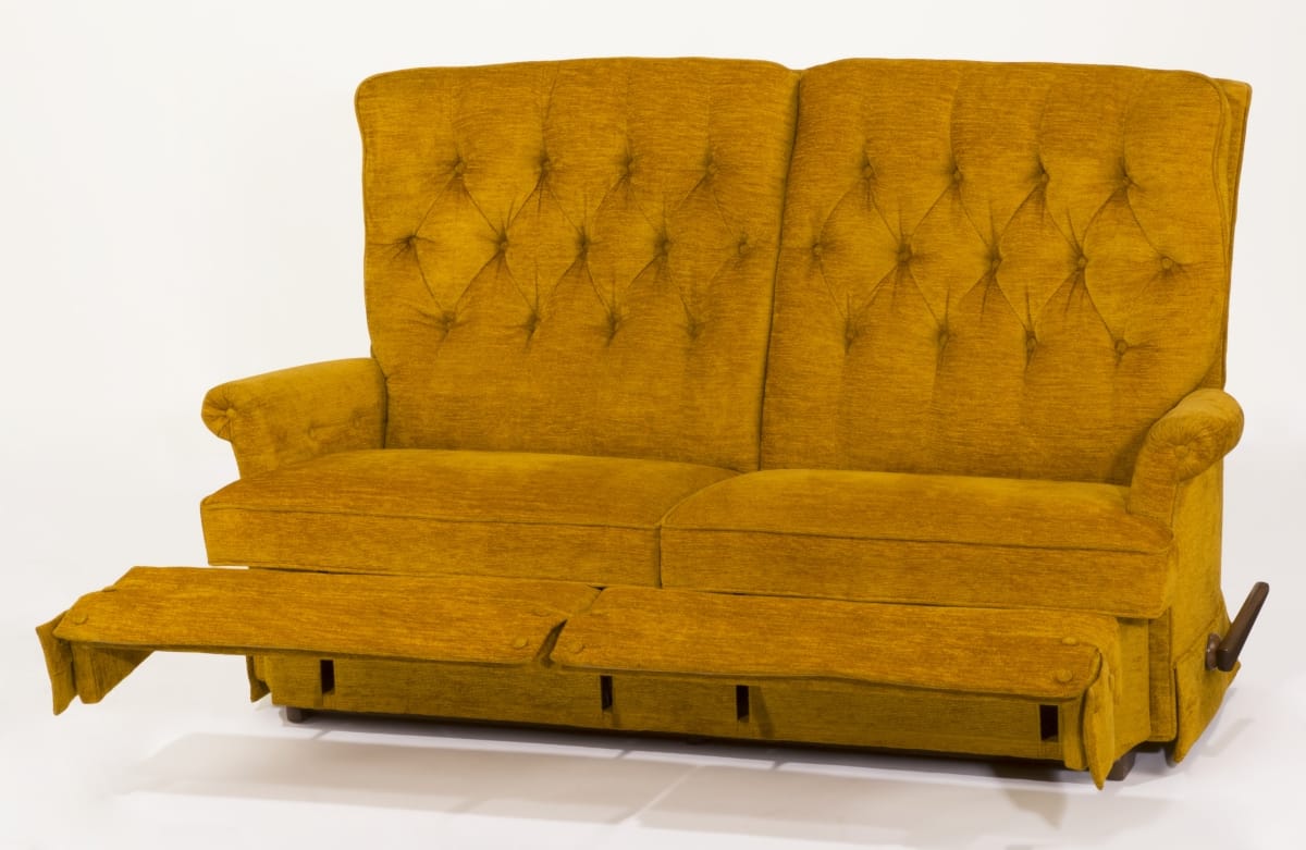 The modern conception of the La-Z-Boy recliner came about through the introduction of the "Reclina-Rocker" in 1961. It was an immediate hit. With its success, La-Z-Boy began production of other forms of reclining seating, like this sofette.