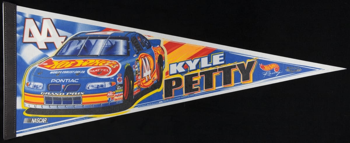 NASCAR's popularity soared in the 1990s and 2000s. With its fan base growing in size and diversity, the sport attracted new sponsors. Traditional advertisers like auto parts stores and motor oils were joined by breakfast cereals, children's toys and other family-friendly products. Cigarette brands were phased out. NASCAR-themed souvenirs, like this pennant, increased sponsors' reach beyond race day.