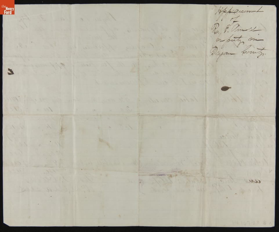 upper right corner of the letter's reverse: Appraisement / of / R. J. Arnold's / property in / Bryan County