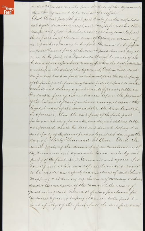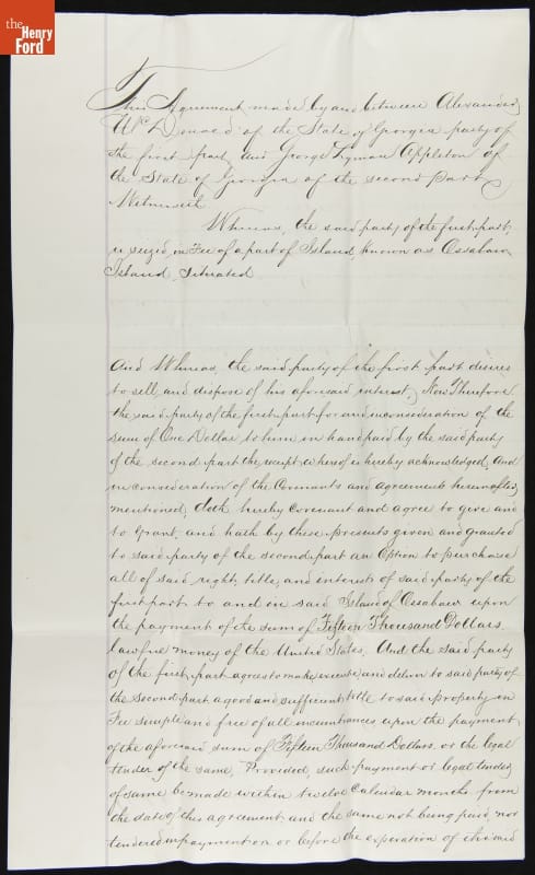 Agreement for the Purchase of Ossabaw Island by George Appleton from Alexander McDonald, November 1, 1877