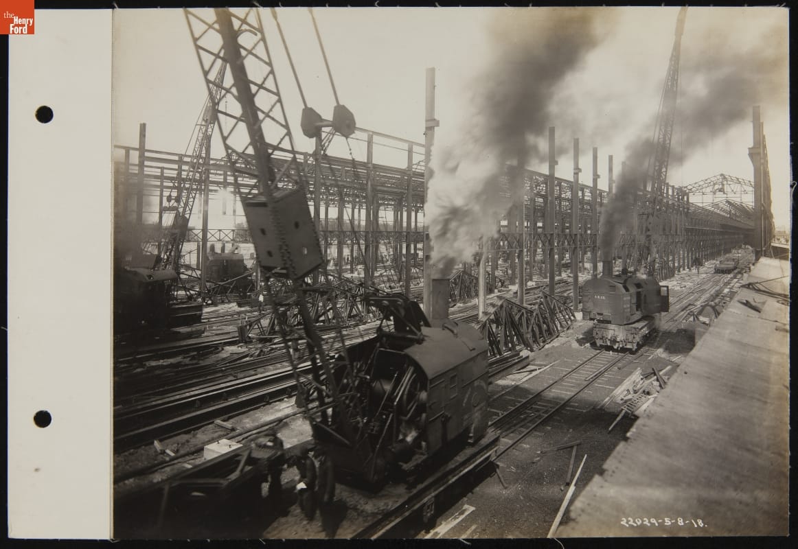 Henry Ford started purchasing land near the mouth of the Rouge River in 1915. He envisioned a new factory complex with access to water transportation and room to grow -- two things missing at Ford's Highland Park plant. Construction of the new Rouge factory started in 1917 and, in a sense, never stopped during Henry Ford's lifetime. Improvements and additions were constant.