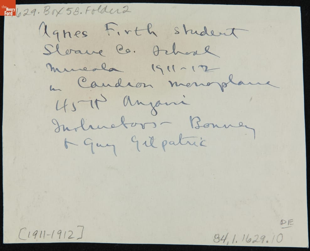 Agnes Firth in a Caudron Airplane, 1911-1912