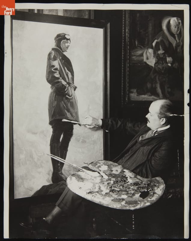 Artist Painting a Portrait of Amelia Earhart, 1928